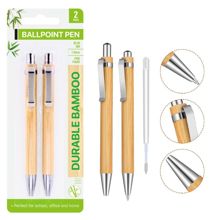 Choose a more natural look for everyday writing with these 2PK ECO Bamboo Ball Point Pens. Featuring a bamboo body, they offer a comfortable grip and a simple, eco-inspired design — ideal for offices, schools and home use. A great option for notes, forms and daily writing with a sustainable touch.